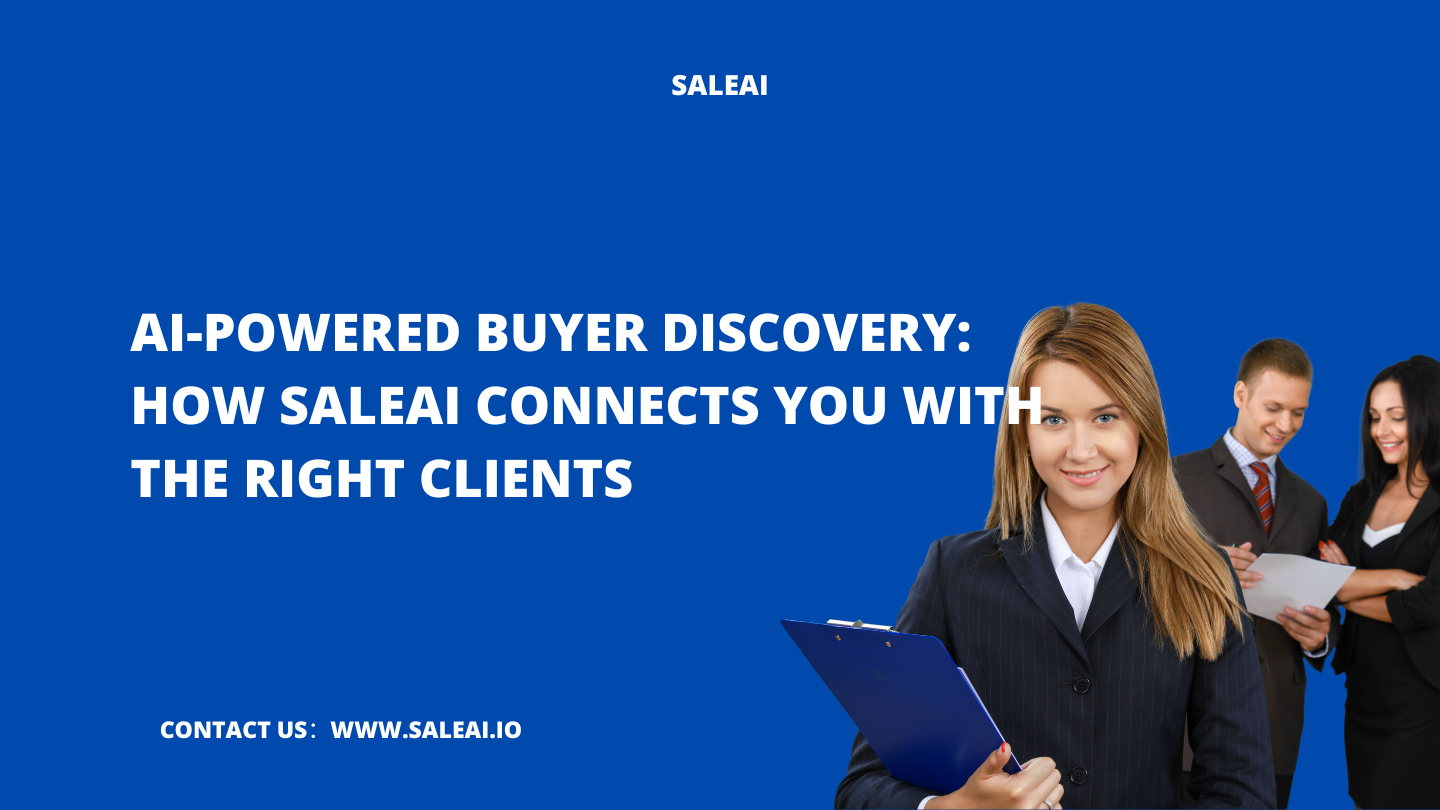 يمكن أن يكون العثور على المشترين المناسبين في سوق التجارة العالمي مثل البحث عن إبرة في كومة قش. يقوم Discovery المشتري الذي يعمل به الذكاء الاصطناعى في Saleai إلى تبسيط هذا التحدي من خلال الاستفادة من الذكاء الاصطناعي لتحديد وتحليل وتوصية المشترين الأكثر أهمية وذات القيمة العالية لعملك.
