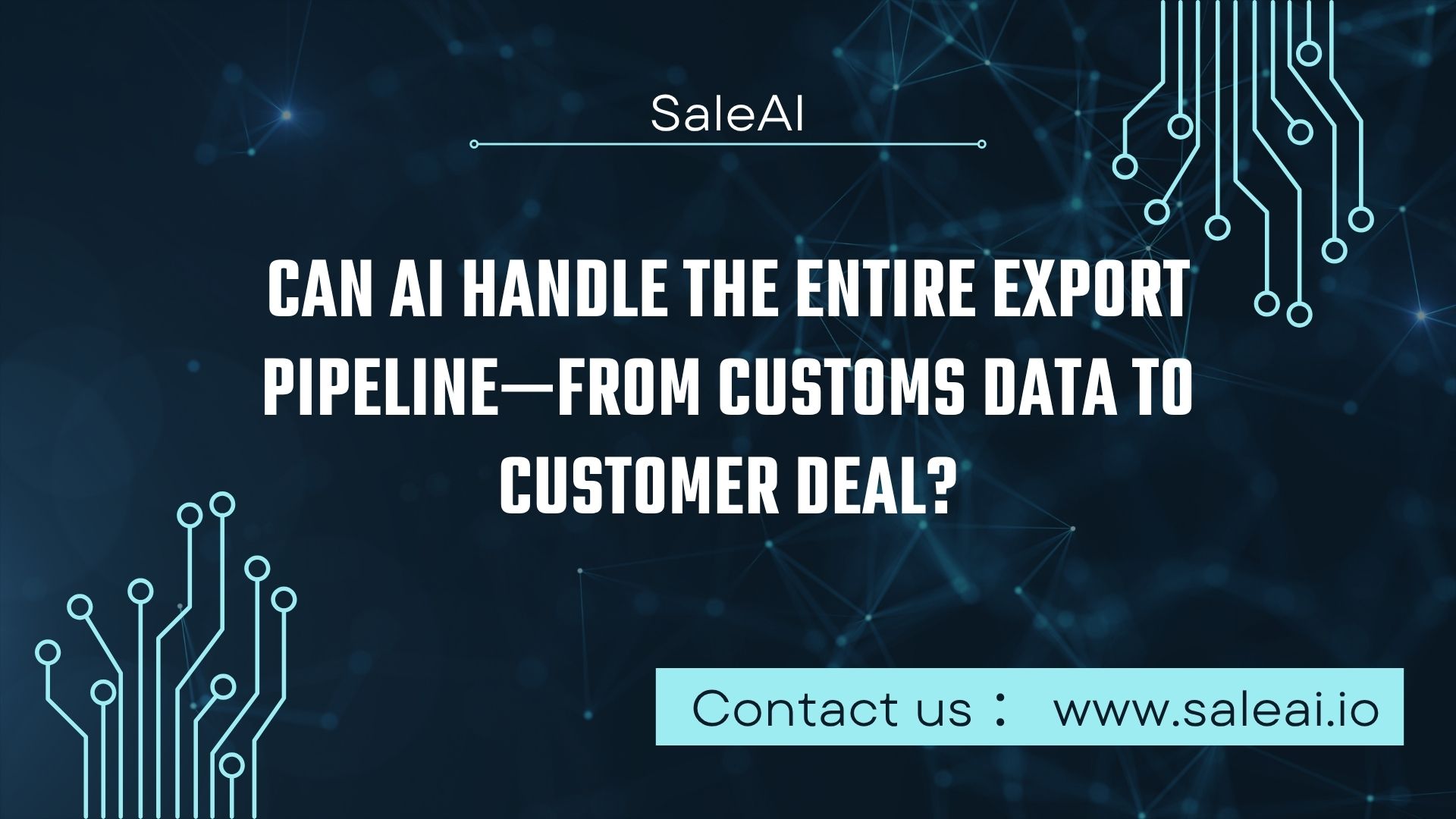 La combinaison des données douanières, de la sensibilisation automatisée, de la citation instantanée et de l'intelligence de suivi crée un véritablepipeline d'exportation de l'IA de bout en bout. Saleai donne vie à cela: